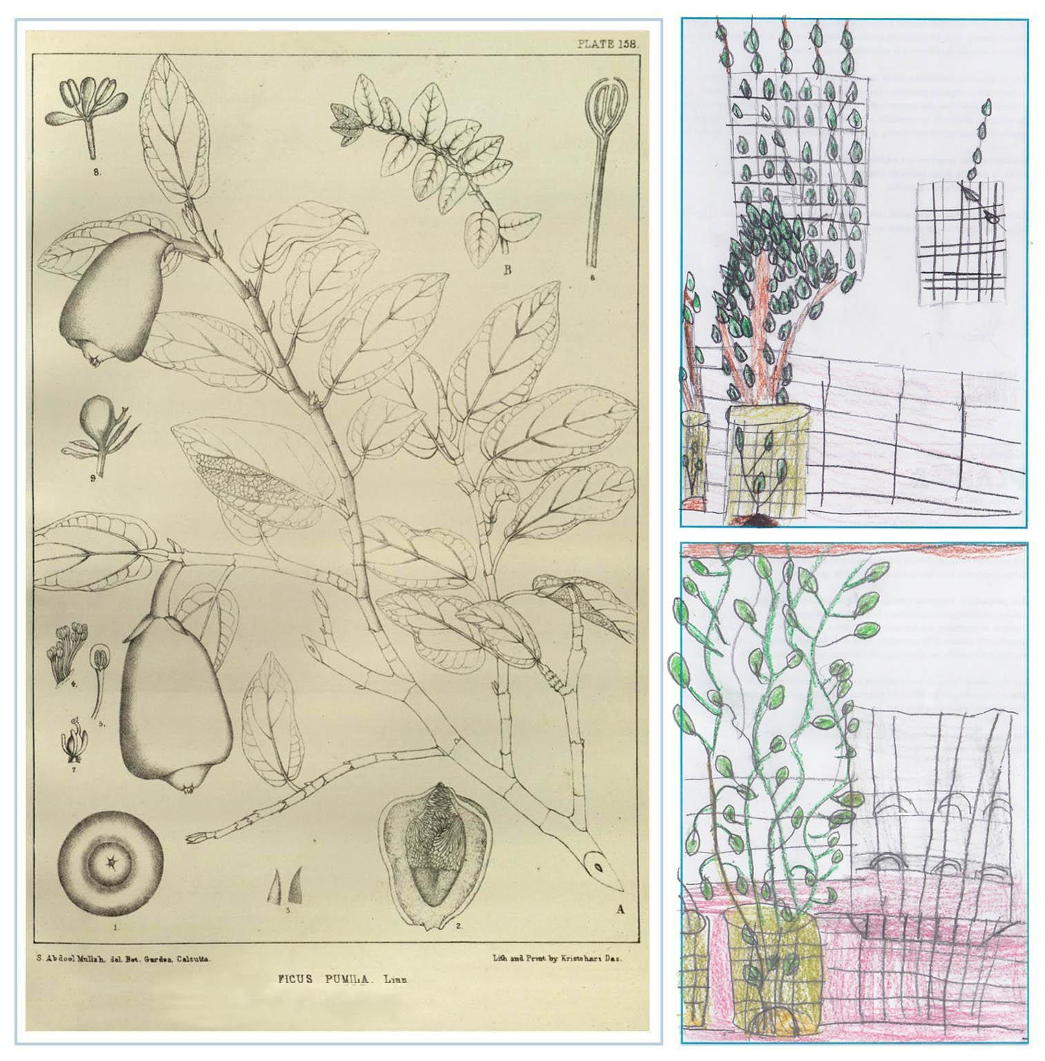 El follaje juvenil es de menor tamaño y delgado que el adulto, y al igual que los demás Ficus, necesita de una avispa simbiótica (en este caso la Blastophaga pumilae) para su polinización.